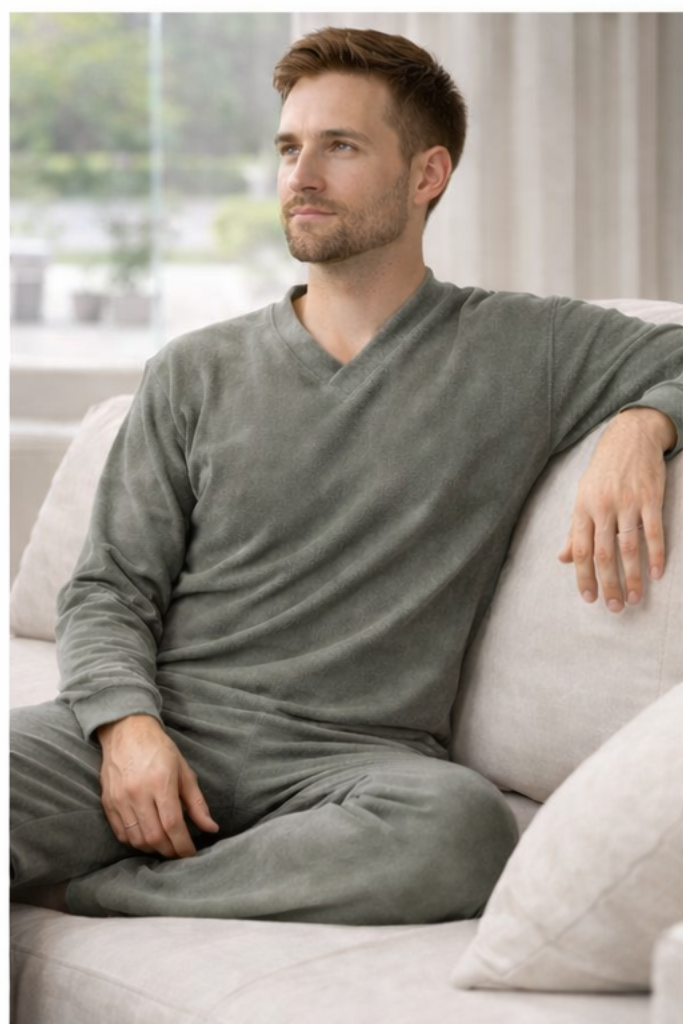 Moška pižama iz frotirja – siva